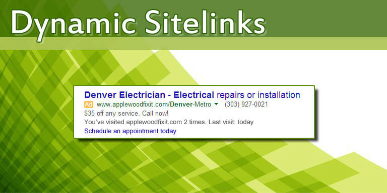 All advertisers who run campaigns set to the “Search Network with Display Select’ or “Search Network only” types will automatically be opted in to this new program. When a search result page includes one of your ads, Google may choose to display a dynamic sitelink on your ad if they feel a particular page on your site is relevant to the search query based on the user’s browsing history. This helps target users who are working their way through the discovery process. For example, a user might be researching local electricians and has decided they want to schedule an appointment.
