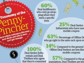 The report classifies shoppers as one of six types of deal seekers, or “penny-pinchers” as referenced in the infographic, and places them on a continuum of deal seeking or deal rejecting behavior.