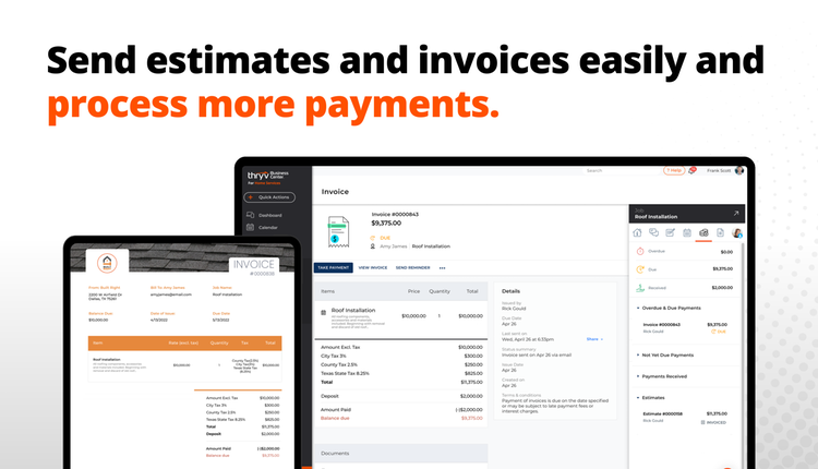- Estimates & Invoicing - Create and send estimates and invoices in a few clicks, allowing your customers to review, approve, and digitally sign so you can secure more jobs faster.