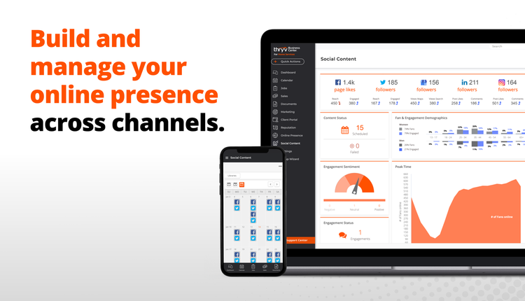- Social Media Management - Keep your business top of mind by consistently posting and engaging with users online across social channels. Connect, post, and schedule content in a few clicks, generate social captions on the fly with the ThryvAI caption generator, or work with an expert to have content created and added directly to your social calendar.